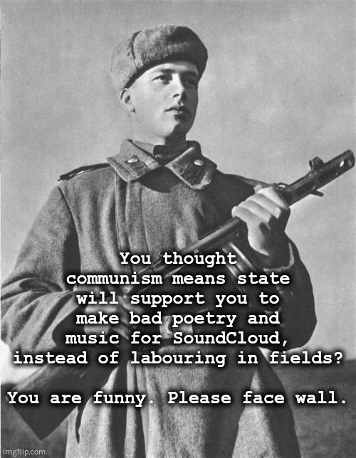 Ludzie żyjący w komunizmie nie lubią komunizmu. To odczłowieczający i brutalizujący system społeczny, a większość ludzi po prostu chce się pobrać, założyć rodzinę i mieć na końcu coś do przekazania dzieciom. Komunizm tak głęboko wypacza społeczeństwo, że uczciwi i przyzwoici pozostają nieszczęśliwi, a na szczyt wspinają się tylko społeczni drapieżcy.
