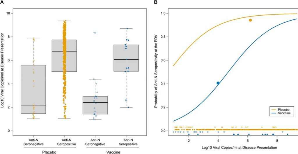 Jak wspomniano wcześniej, biorcy placebo wytwarzali przeciwciała anty-N ponad dwukrotnie częściej niż ich zaszczepieni odpowiednicy. dobre wyjaśnienie znaczenia przeciwciał anty-N tutaj .)