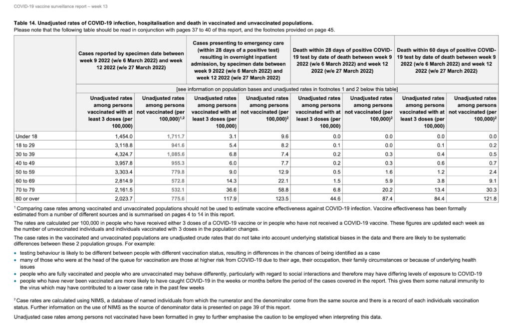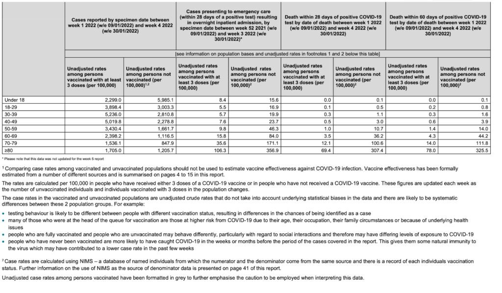 Więcej rozczarowujących danych pochodzi z Wielkiej Brytanii. W swoim ostatnim cotygodniowym raporcie z , który zawiera wskaźniki przypadków pomiędzy niezaszczepionymi i wzmocnionymi obywatelami, Agencja Bezpieczeństwa Zdrowia przedstawiła tę niepokojącą tabelę: