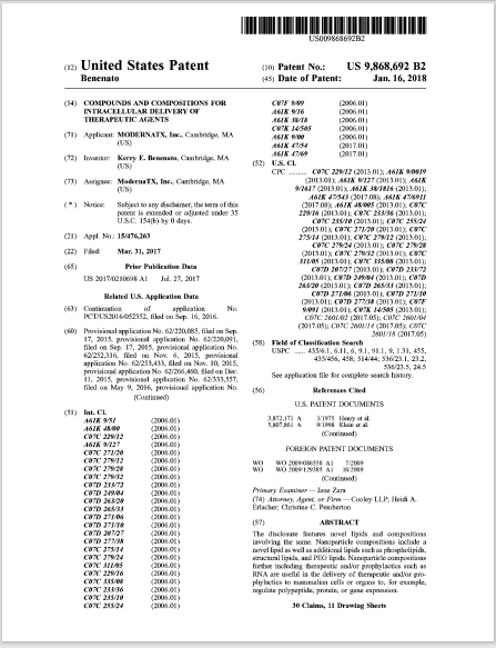 Oto kopia patentu Moderny US 9,868,692, jako przykład – będącego współwłasnością tego samego rządu USA, który nielegalnie próbował wymusić go na wszystkich Amerykanach – dopóki sąd federalny nie zatrzymał tych drani.