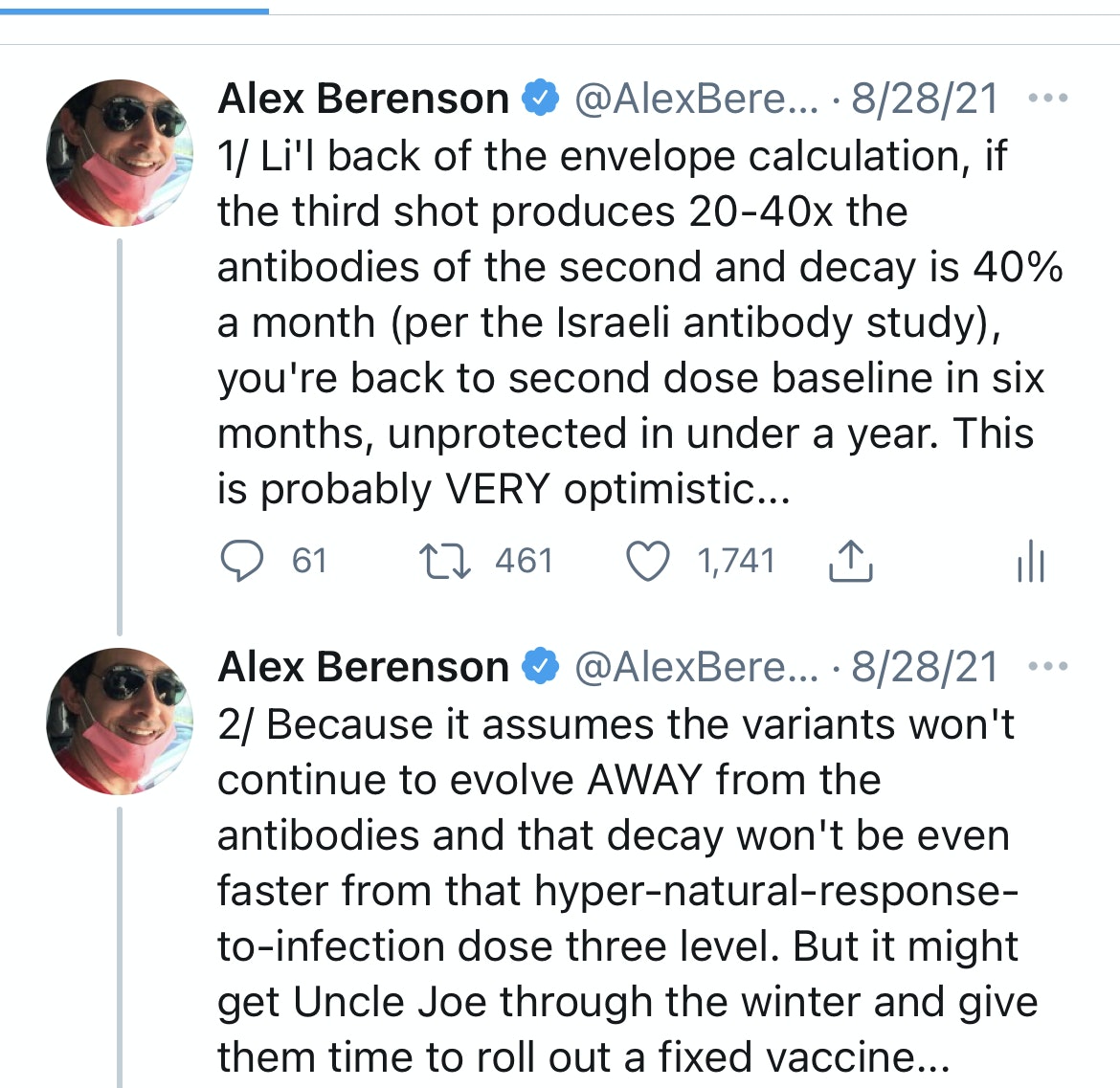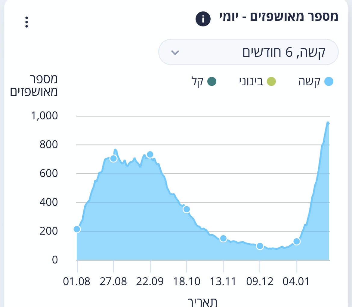 Izrael zawsze był najważniejszym krajem oceniającym szczepionki Covid mRNA. Czemu? Ma prawie całkowite pokrycie szczepionkami dla dorosłych. Wysiłki obwiniania „nieszczepionych” za to, co się dzieje, nie zostaną utrzymane. Izrael ma dobre dane – o wiele bardziej kompletne i aktualne niż dane amerykańskie. I szczepi się szybko, więc jakikolwiek wpływ, jaki szczepionki wywierają, ma wpływ na populację (i danych) szybko. Ale przede wszystkim Izrael ma znaczenie, ponieważ Izrael był pierwszy . Najpierw został masowo zaszczepiony mRNA firmy Pfizer i jako pierwszy otrzymał dawkę przypominającą. A biologia człowieka jest wszędzie taka sama. Więc to, co dzieje się w Izraelu, dzieje się ostatecznie we wszystkich innych krajach mRNA. Jak powiedział we wrześniu główny oficer naukowy Pfizera, Izrael jest „rodzajem laboratorium” dla szczepionek. Oto jak przebiega izraelski eksperyment. Ten wykres śledzi poważne przypadki Covid (zasadniczo hospitalizacje na oddziale intensywnej terapii) w Izraelu od początku 2020 r., początku epidemii: (Stany Zjednoczone mają 36 razy więcej ludzi niż Izrael, więc 1000 pacjentów OIOM przekłada się na 36 000. Izrael ma również stosunkowo młodą populację, co oznacza, że Covid będzie ogólnie mniej dotkliwy niż w USA.) — Wykres pokazuje pięć wyraźnych skoków Covida. Pierwsze dwa są w 2020 roku, w erze przed szczepieniem. Trzeci kolec, środkowy, jest jak dotąd największy. Trwało to od grudnia 2020 r. do lutego 2021 r., kiedy rozpoczęły się masowe szczepienia osób starszych. Jak pisałem wówczas na Twitterze, ten link prawdopodobnie nie był przypadkiem. Kraje w pobliżu Izraela, które nie szczepiły, nie miały tak ostrych skoków. Wielka Brytania, drugi co do wielkości kraj, który rozpoczął masowe szczepienia, tak zrobiła. Późniejsze prace wykazały znaczny wzrost infekcji zaraz po pierwszej dawce mRNA, prawdopodobnie dlatego, że szczepionka tymczasowo obniża ogólną odporność na infekcje. Ale nawet kilka naprawdę złych tygodni to niewielka cena za długofalowy sukces. Co się wydarzyło w miarę postępu kampanii szczepień? Po styczniu 2021 r. liczba poważnych przypadków spadła, a do maja spadła prawie do zera – łącznie wśród nieszczęśników, którzy od miesięcy utknęli na respiratorach. To było to, co później nazwałbym doliną szczęśliwych szczepionek, ten krótki okres, kiedy szczepionki wydawały się działać zgodnie z reklamą. Zwolennicy szczepień byli zachwyceni. Wierzyli, że szczepionki zasadniczo zakończą Covid. „Odporność stada” była w zasięgu wzroku. 20 maja dr Anthony Fauci powiedział Washington Post 20 maja, że wierzy, iż Covid można wyeliminować w Stanach Zjednoczonych – nie tylko kontrolować, ale i wyeliminować – jeśli tylko zaszczepi się wystarczającą liczbę osób. ŹRÓDŁO: https://www.washingtonpost.com/washington-post-live/2021/05/20/transcript-coronavirus-leadership-during-crisis-with-anthony-s-fauci-md/ Niektórzy ludzie, którzy są nawet bardziej sceptyczni niż ja, będą argumentować, że wiosenne wzrosty Izraela były w dużej mierze sezonowe i nie były spowodowane szczepionkami. Nie zgadzam się. Przez większą część maja 2020 r. Izrael zgłaszał dziennie mniej niż 20 przypadków koronawirusa; Nie sądzę, aby spadek był spowodowany wyłącznie sezonowością. Ale to nie ma znaczenia. Tragedią szczepionek mRNA nie , że w ogóle nie działają. Robią. Przez kilka miesięcy - najwyżej cztery lub pięć. A zeszłej wiosny dali ludziom, którzy w nich wierzyli, przebłysk świata bez Covida, świata, w którym oddani badacze zniszczyli takich sceptyków z branży farmaceutycznej jak ja, a teoretyków spiskowych zepchnęli z powrotem do piwnicy. Triumfalne motto firmy Pfizer: „Nauka zwycięży”. — Pfizer się mylił. Nauka nie wygrała. Biologia wygrała. Nasze układy odpornościowe usunęły przeciwciała przeciwko białku kolce, do których produkcji zmusiły je szczepionki mRNA; a szczepionki nie przyniosły takich samych długoterminowych ulepszeń immunologicznych, jakie powodują naturalna infekcja i powrót do zdrowia po Covid. Gdy przeciwciała zniknęły, zniknęła również ochrona. W lipcu liczba nowych infekcji w Izraelu gwałtownie wzrosła. Do sierpnia rosły też poważne przypadki. (skok z końca lata 2021 r. jest czwartym na liście.) Większość chorych była w pełni zaszczepiona - 60 procent w połowie sierpnia. Tak, niezaszczepieni nadal mieli większe ryzyko ciężkiej choroby. Jednak, jak wielokrotnie pisałem, porównywanie wskaźników zgonów nieszczepionych osób starszych w krajach o wysokim poziomie szczepień do wskaźników zgonów w znacznie większej grupie zaszczepionych osób jest mylące. Wiele nieszczepionych osób starszych nie zostało zaszczepionych, ponieważ są zbyt słabi, aby tolerować szczepionkę, a zatem są narażeni na wysokie ryzyko Covid (lub jakiejkolwiek innej choroby). Liczy się ogólna liczba ludności. Izraelscy eksperci ds. zdrowia wiedzieli. „To bardzo wyraźny znak ostrzegawczy dla reszty świata”, powiedział jeden z magazynów Science 15 sierpnia. — W tym momencie władze i rządy zdrowia publicznego w Izraelu i wszędzie indziej miały wybór. Mogli przyznać, że szczepionki mRNA zawiodły – że ich ochrona spadała i będzie spadać – i że świat będzie musiał żyć z Covid w dającej się przewidzieć przyszłości. Mogą też podwoić i zaoferować trzecią „wzmacniającą” dawkę mRNA – dawkę, która nie została podana w dużych badaniach klinicznych w 2020 r. przez firmy Pfizer i Moderna, które skłoniły ich do zezwolenia na stosowanie szczepionek. Bardzo wstępne dane z badań klinicznych sugerowały, że trzecia dawka może tymczasowo zwiększyć poziom przeciwciał przeciwko białku kolca. Ale nikt nie mógł wiedzieć, czy wytworzy długotrwałą odporność. A fakt, że oryginalny schemat d