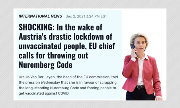 The lawless European Commission president, Ursula von der Leyen, who said just days ago that Europe ‘must consider’ ignoring the Nuremberg Code—by which she should be hung—now says she meant it should ‘be debated’.