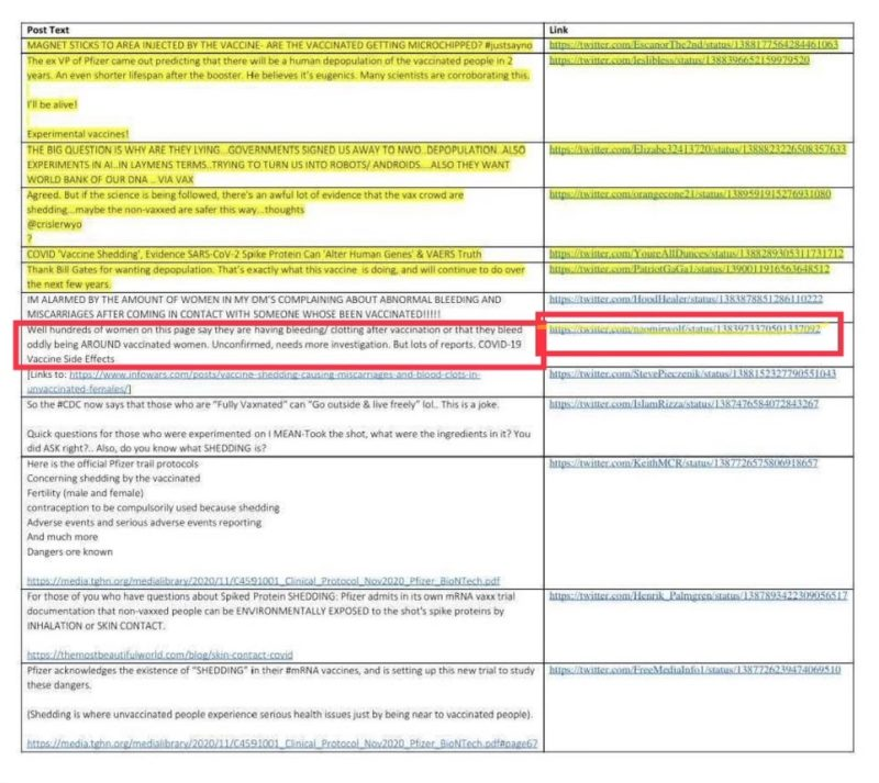 Wśród zaatakowanych znalazła się Naomi Wolf, która, o ile wiem, jako pierwsza ujawniła związek między szczepieniami a nieregularnymi wzorcami miesiączkowania. Za rozmawianie na ten temat została na stałe zbanowana przez Twittera. To bezpośrednie trafienie zostało zlecone przez samo CDC.